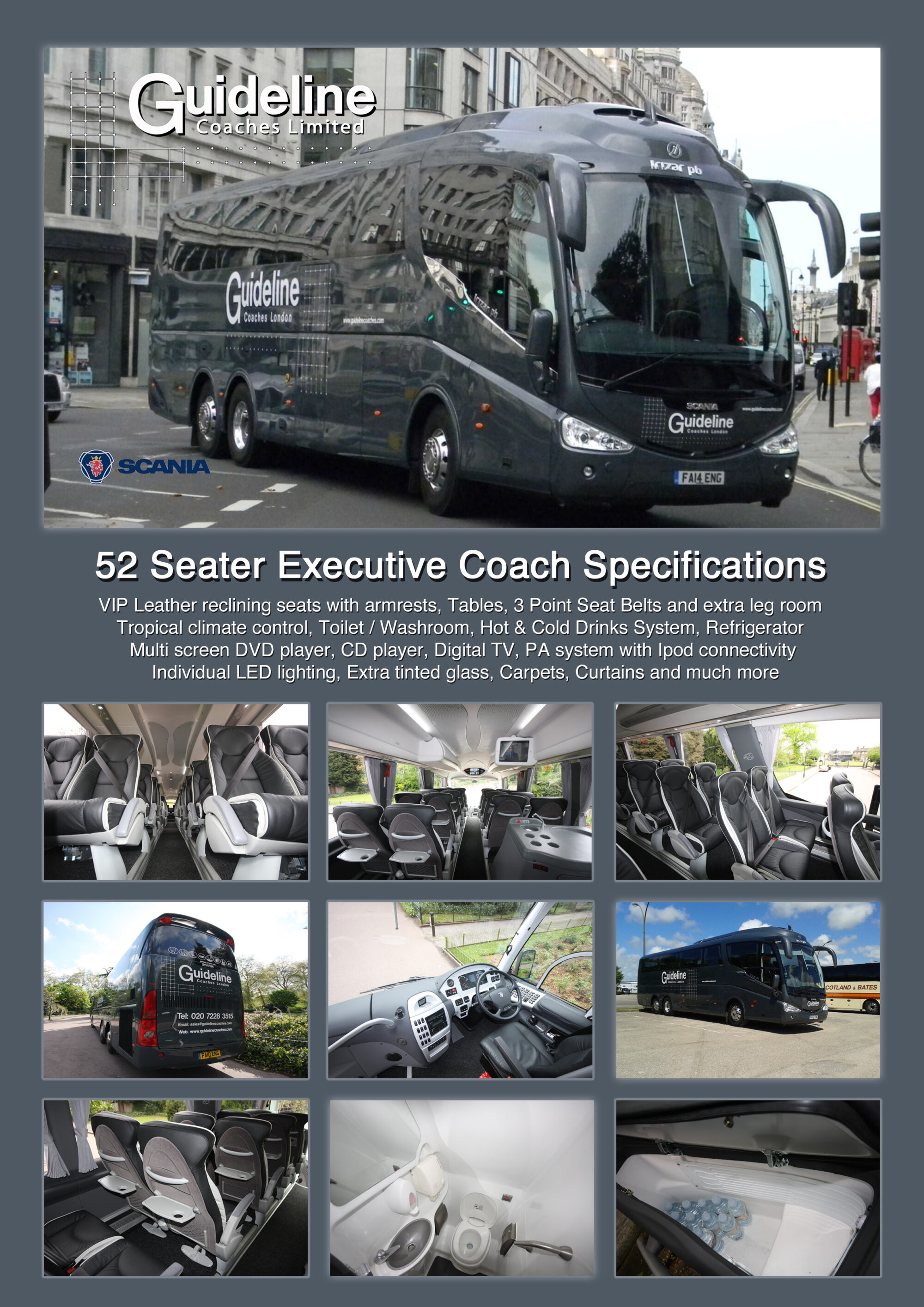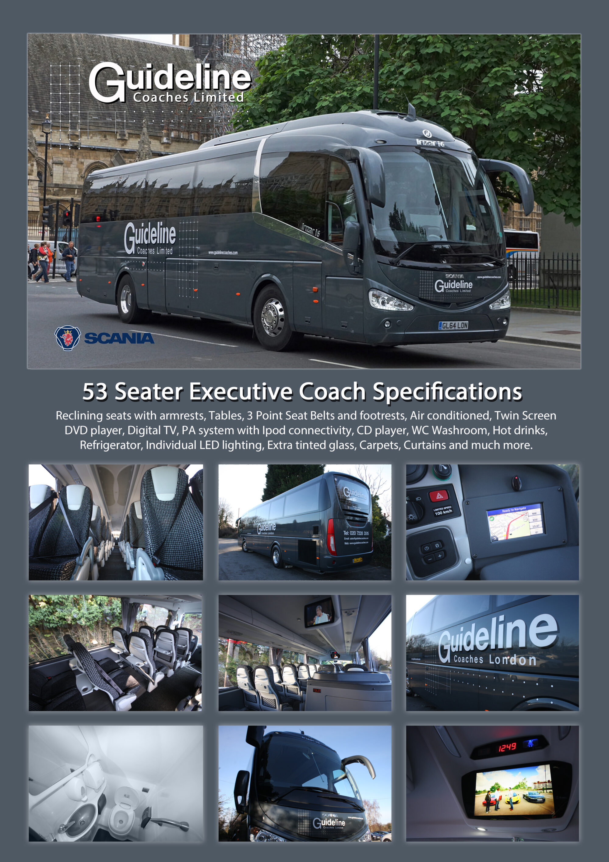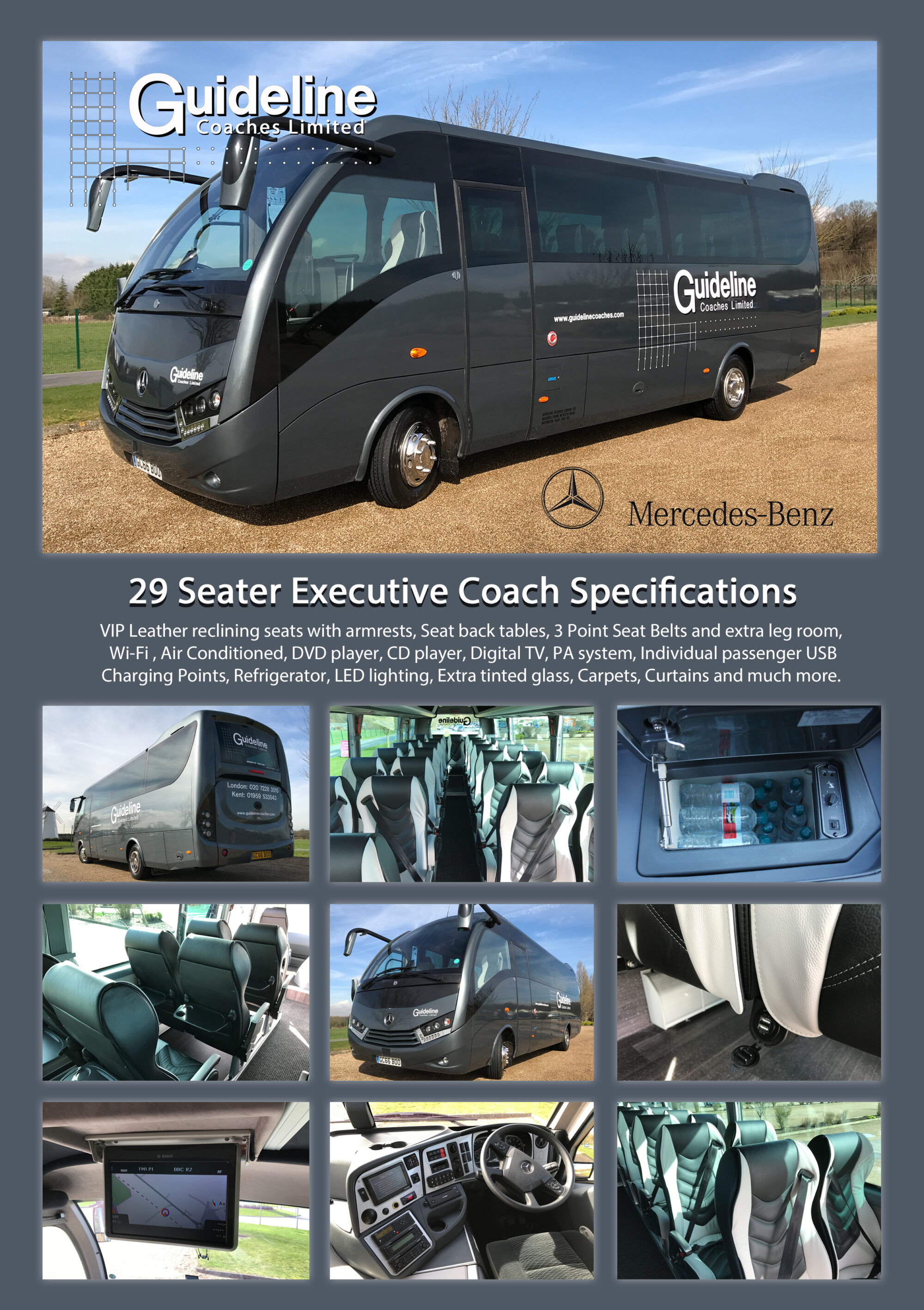 Guideline Coaches Ltd offer coach hire throughout the U.K. and Europe. We only operate the very highest standard of new and modern coaches that are based on Scania and Mercedes engineering platforms. Each of our coaches utilise the very latest in safety technology, combining collision avoidance with auto braking and active lane departure warning systems.